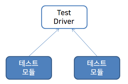 > 테스트가 완료되면 각 클러스터들은 프로그램의 위쪽으로 결합, 드라이버는 실제 모듈 또는 컴포넌트로 대체